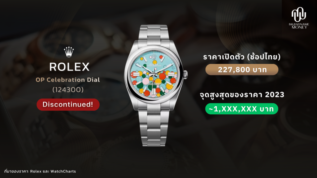 ส่วนฝั่ง Celebration Dial หรือที่หลายคนเรียกกันเล่น ๆ ว่าแนว Bubble ก็เป็นอีกตัวอย่างที่น่าสนใจ เพราะในตลาดรองมีการพูดถึงกันมากว่าเป็นรุ่นที่ยิ่งแรงขึ้น หลังจากเกิดการรับรู้ของตลาดว่าอาจมีการหยุดผลิต (Perception of Discontinuation) และจำนวนผลิตที่จำกัด